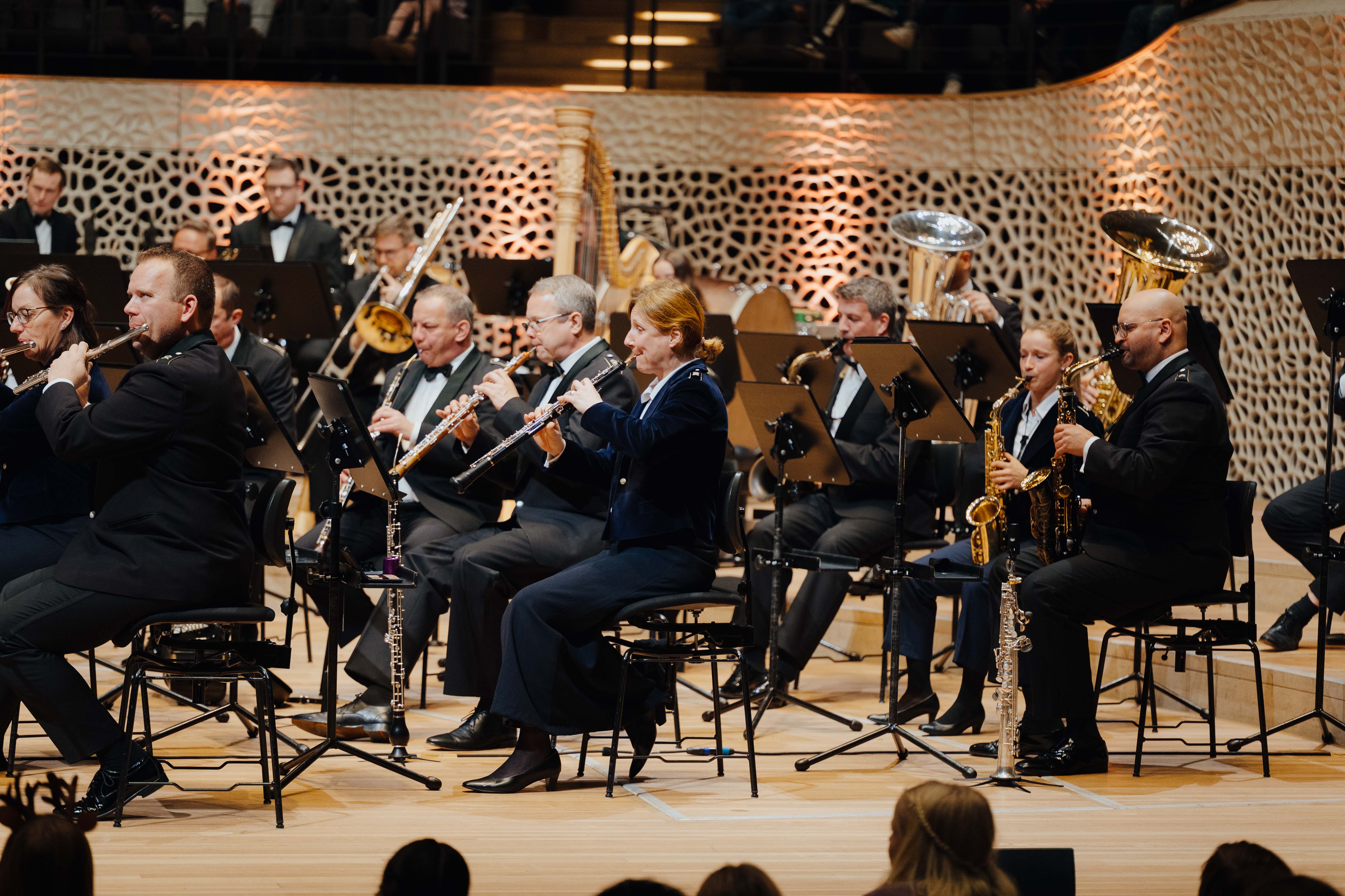 Am 12. Dezember 2025 um 10:30 Uhr war es wieder so weit: 2.000 Viertklässler aus 25 Hamburger Grundschulen durften sich auf ein besonderes musikalisches Erlebnis freuen. Die Elbphilharmonie wurde zur Bühne für die Tondichtung „Hamburg – Das Tor zur Welt“, eine spannende Zeitreise durch die Geschichte der Hansestadt. Die musikalische Begleitung übernahm das renommierte Musikkorps der Bundeswehr unter der neuen Leitung von Oberstleutnant Timor Oliver Chadik, während die bekannte Stimme von James Bond, Dietmar Wunder, das Stück in Hamburg präsentierte. Ein besonderer Ehrengast war in diesem Jahr Oberst Christoph Scheibling, seit 1. September 2025 neuer Leiter des Militärmusikdienstes und Leiter des Zentrums für Militärmusik.